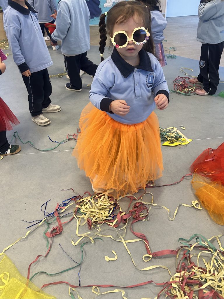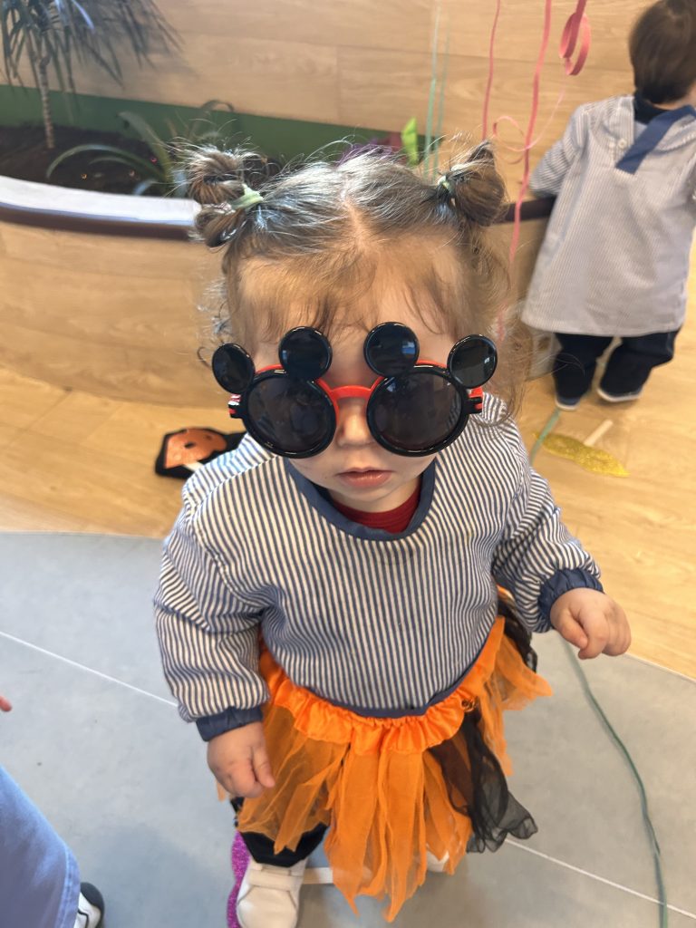 En 1 y 2 años disfrutaron de una instalación de aprendizaje llena de color, texturas y diversión. Faldas de tul, sombreros brillantes, máscaras, corbatas y serpentinas han sido los protagonistas de una experiencia sensorial donde han explorado, tocado, probado, descubierto… ¡y celebrado! 🎉