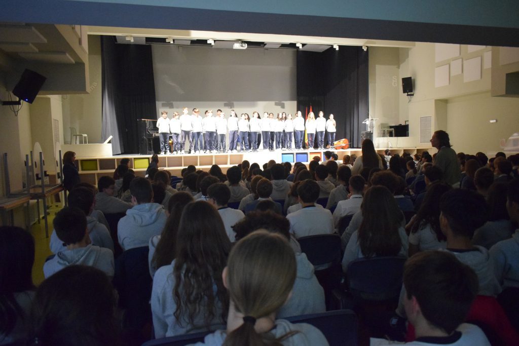 La ESO apostó por la innovación. Los alumnos compusieron canciones con Inteligencia Artificial. Cada clase creó su propio himno. Cantaron estos temas en formato coral durante el concierto.